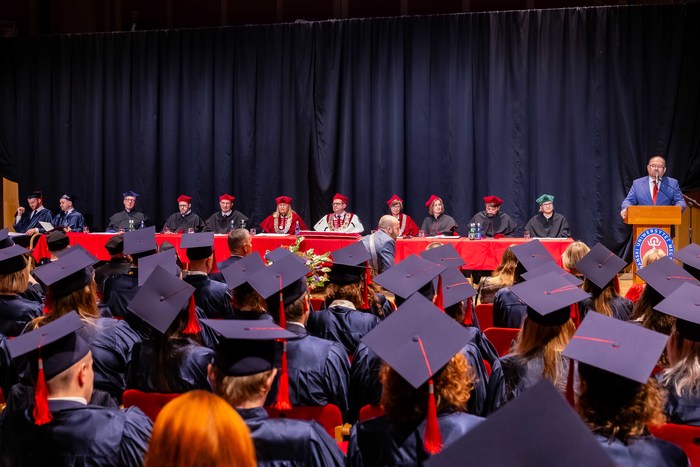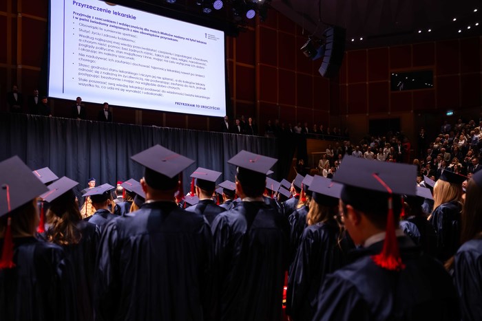 Absolwenci kierunku lekarskiego rocznika 2018-2024 uroczyście zakończyli studia. Dyplomatorium odbyło się 19 października br. w Polskiej Filharmonii Bałtyckiej im. Fryderyka Chopina. Prowadzili je lek. Krzysztof Kamiński i lek. Marcin Sawczuk. W uroczystości oprócz absolwentów i ich bliskich uczestniczyli przedstawiciele władz Uczelni z rektorem prof. Michałem Markuszewskim na czele oraz zaproszeni goście.