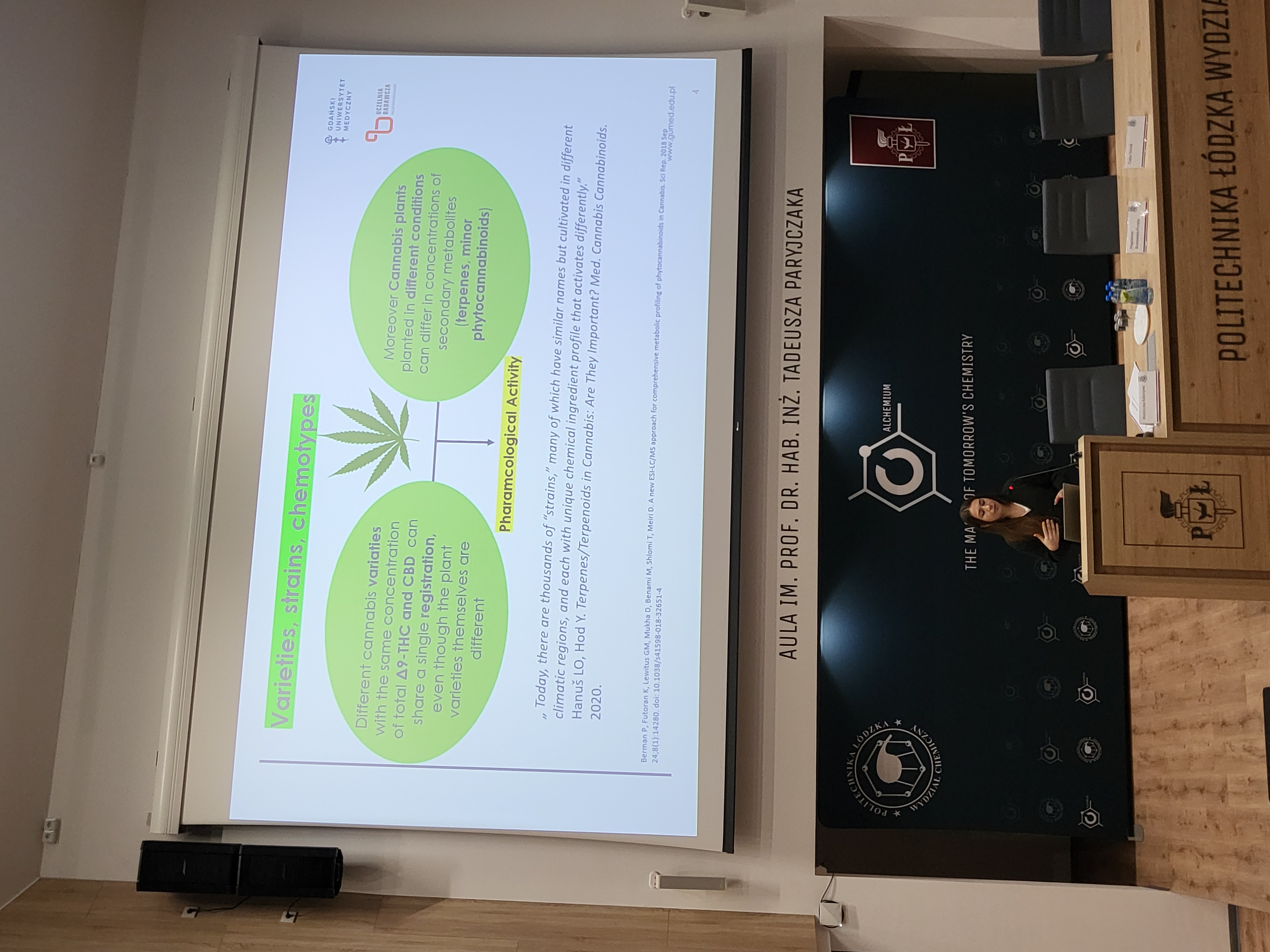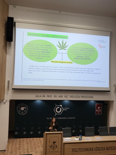Drugie wyróżnienie trafiło do mgr Katarzyny Woźniczki z Katedry i Zakładu Chemii Farmaceutycznej, za prezentację Optimization of SHS-GC-MS/MS conditions towards analysis of terpenes in medicinal cannabis dried material.