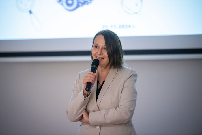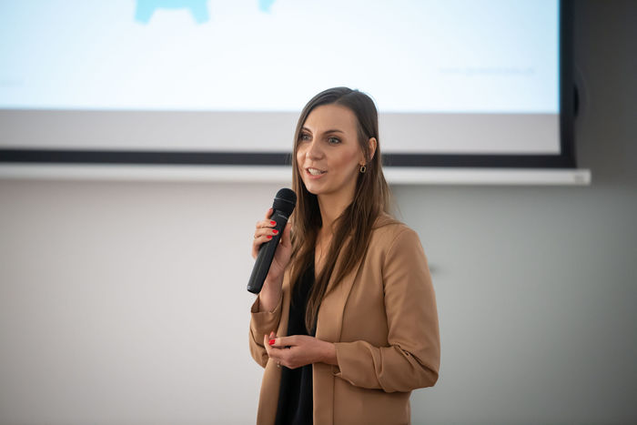 Dr Anna Szablewska z Zakładu Pielęgniarstwa Położniczo-Ginekologicznego GUMed przedstawiła korzyści z angażowania studentów poprzez działalność w kolach naukowych i ich rolę w nauce współpracy i transferze wiedzy.