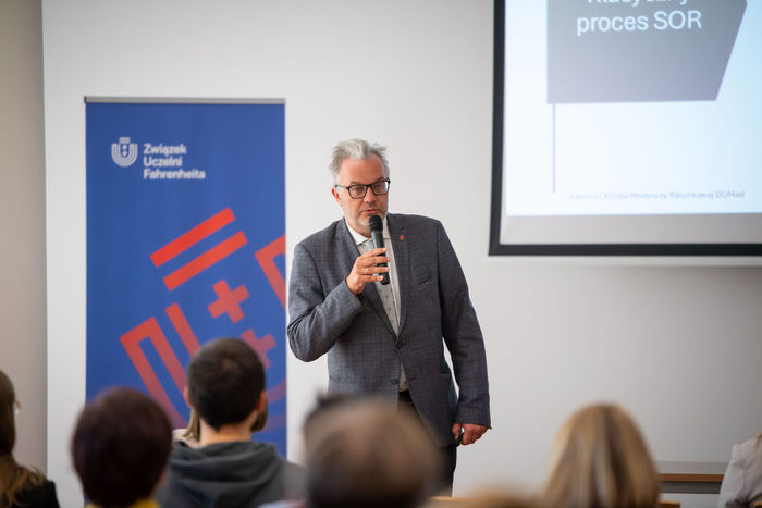 Studenci jako asystenci lekarza – wdrażanie w praktykę kliniczną to temat podjęty przez prof. Mariusza Siemińskiego z Katedry i Kliniki Medycyny Ratunkowej (GUMed i UCK) oraz Piotra Ciborskiego, zastępcę dyrektora naczelnego ds personalnych UCK, szpitala GUMed.