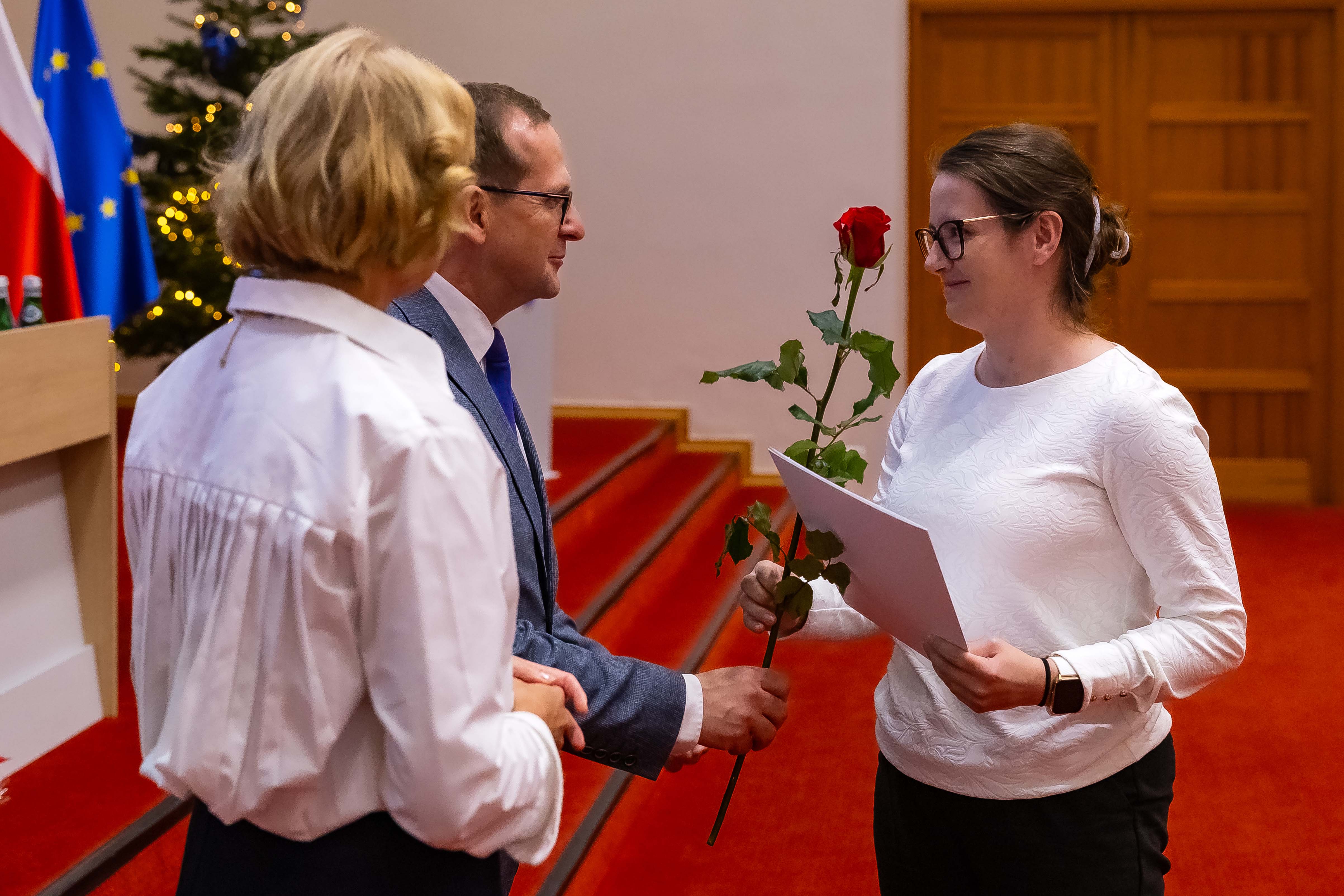 – Dzisiaj na sali zebrali się naprawdę najlepsi. Jesteście tymi, którzy mi też dodają skrzydeł i przede wszystkim chciałam wam za to podziękować. Na co dzień zazwyczaj słyszymy, że ankieta dydaktyczna jest dla tych, którzy biorą udział w konkursie piękności. To nieprawda. Wy dostarczacie nam namacalnych wyników, które wskazują, że w ankiecie studenci wypowiadają się w sposób bardzo świadomy, rzetelny na temat państwa przygotowania merytorycznego, ale przede wszystkim wskazują, jaką pasją darzycie to, co robicie na co dzień – mówiła prof. Agnieszka Zimmermann, prorektor ds. kształcenia.
