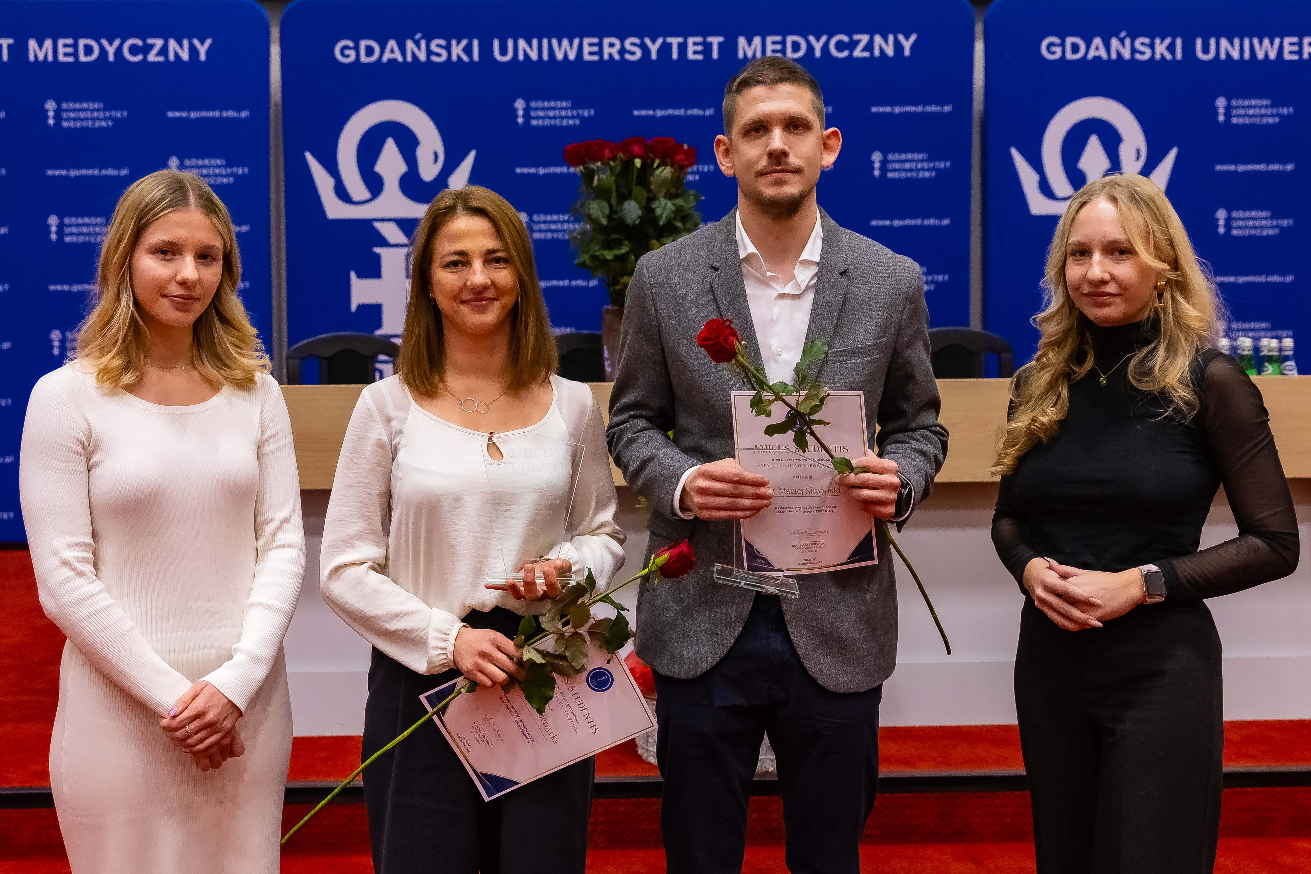 W trakcie uroczystości, wyróżnienia Amicus Studentis wręczyły przedstawicielki Uczelnianego Samorządu Studenckiego GUMed. Otrzymali je: