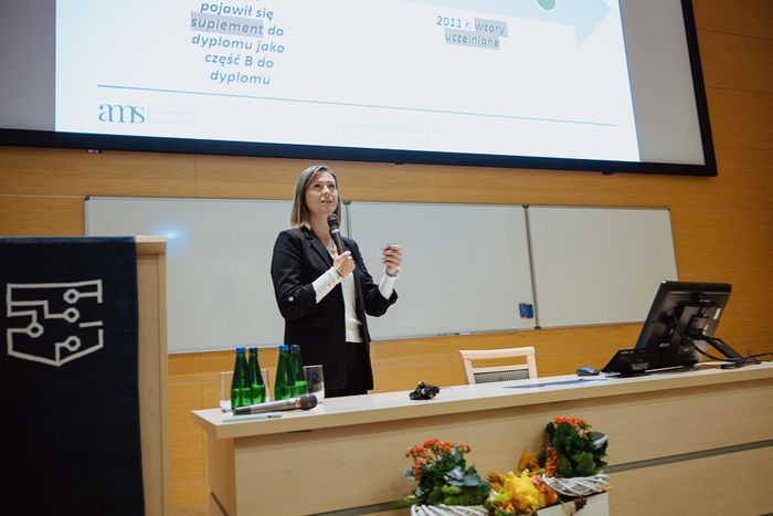 Posiedzenie było podzielone na panele, pierwszy z nich pt. Dyplomy i suplementy w pigułce – zasady sporządzania, wydawania, wymiany oraz wystawiania duplikatów. Najważniejsze informacje o dyplomach cyfrowych i dyplomach europejskich w oparciu o obowiązujące oraz projektowane przepisy poprowadziła mgr Aleksandra Matukin-Szumlińska z AMS Pracownia Szkoleniowa. Omówiła zmiany w przepisach dotyczących wydawania dyplomów, w tym cyfrowych, które od 1 stycznia 2026 r. staną się standardem. Zwróciła uwagę na oczekiwane rozporządzenie MNiSW dotyczące wymagań technicznych i repozytorium dyplomów elektronicznych. Przedstawiła także korzyści wynikające z wprowadzenia europejskiego dyplomu, ułatwiającego mobilność studentów i współpracę uczelni w UE.