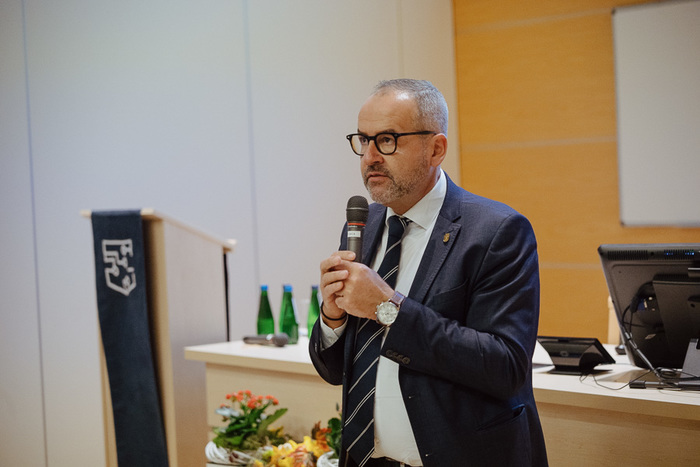 Prof. dr hab. Agnieszka Zimmermann, prorektorka ds. kształcenia reprezentowała GUMed podczas I Otwartego Posiedzenia Uczelnianych Forów Dziekanatów Politechniki Gdańskiej, Uniwersytetu Gdańskiego i Gdańskiego Uniwersytetu Medycznego. W wydarzeniu, które odbyło się 25 listopada br., wzięło udział 160 osób. Wśród przedstawicieli władz uniwersyteckich znaleźli się również prof. Piotr Stepnowski, przewodniczący Zgromadzenia Związku Uczelni, rektor UG, prof. Krzysztof Wilde, rektor PG, dr Barbara Wikieł, prof. PG, prorektorka ds. studenckich, dr hab. inż. Justyna Kucińska-Lipka, prof. PG, prorektorka ds. rozwoju oraz dr. hab. inż. Mariusz Kaczmarek, prof. PG, prorektor ds. kształcenia.