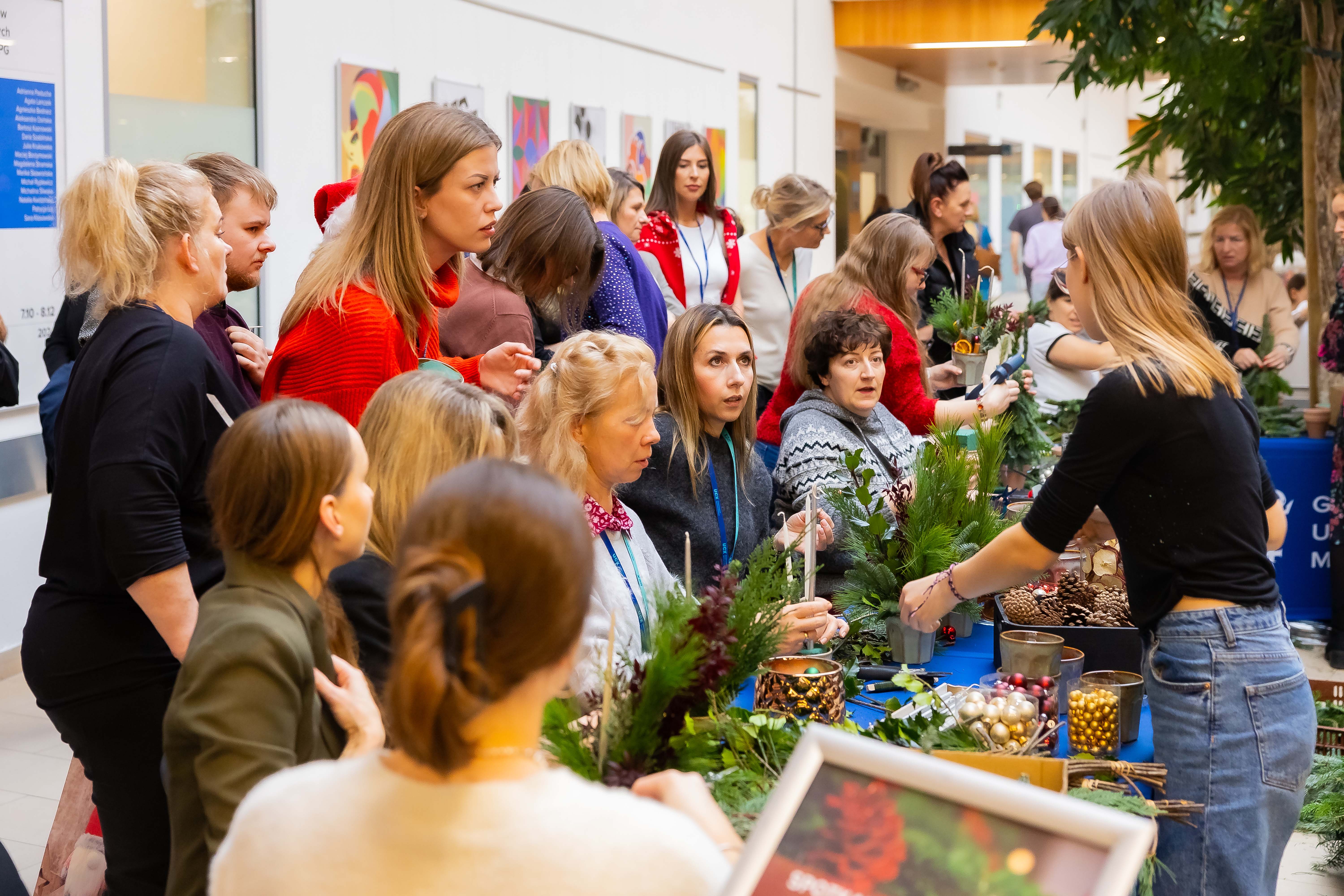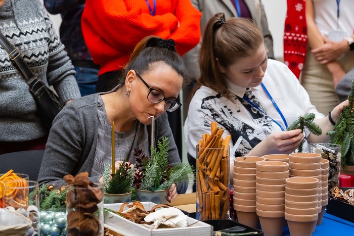 Podczas wydarzenia można było uczestniczyć w warsztatach zorganizowanych przez pracownię florystyczną. Chętni przygotowywali wianki pachnące lasem, aromatyczne świece sojowe, choinki w stylu boho i dekorowali pierniki. Ozdoby można było potem zapakować pod czujnym okiem florysty.