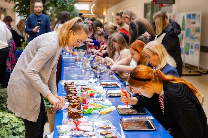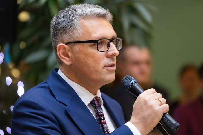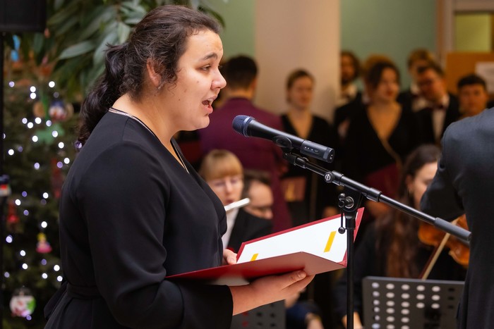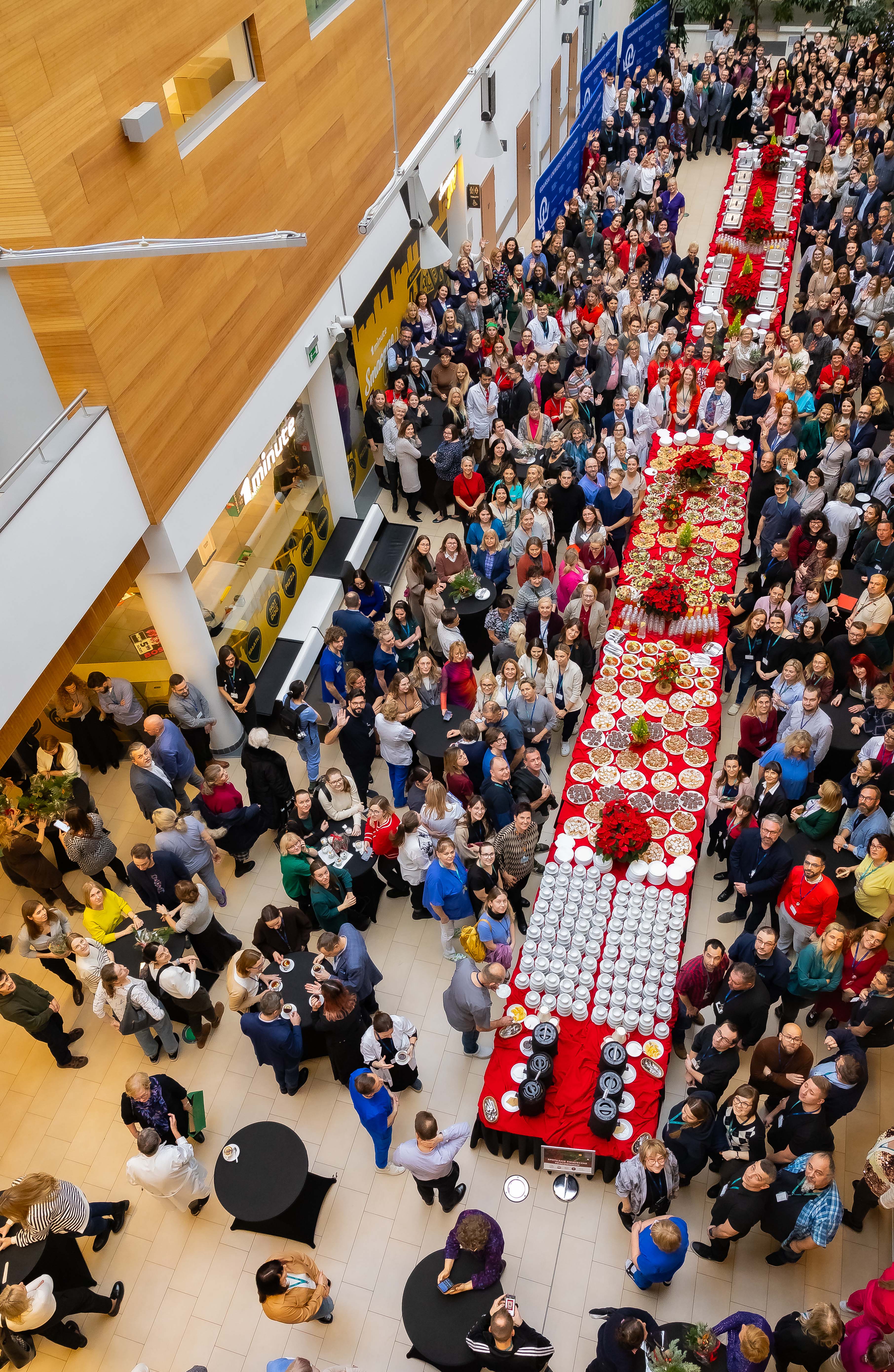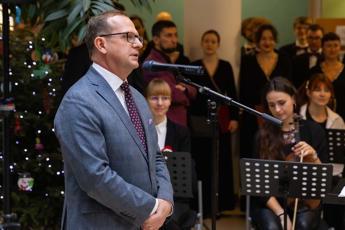 Społeczność Gdańskiego Uniwersytetu Medycznego, Uniwersyteckiego Centrum Klinicznego, Uniwersyteckiego Centrum Medycyny Morskiej i Tropikalnej, Uniwersyteckiego Centrum Stomatologicznego i Centrum Medycyny Rodzinnej spotkała się 19 grudnia 2024 r. w Centrum Medycyny Inwazyjnej, by złożyć sobie świąteczne życzenia. W imieniu władz Uczelni wszystkiego co najlepsze życzył prof. Michał Markuszewski, rektor GUMed. Życzenia przekazali także dyrektor UCK dr Jakub Kraszewski, dyrektor UCMMiT prof. Marcin Renke, prezes UCS dr Mirosława Pellowska-Piontek i prezes CMR dr Piotr Gutknecht. O oprawę muzyczną spotkania zadbały Chór i Orkiestra Gdańskiego Uniwersytetu Medycznego. Nie zabrakło znanych i chętnie śpiewanych kolęd.