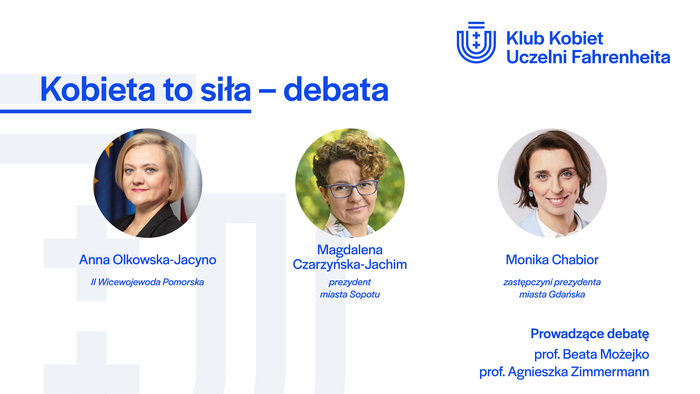 Zapraszamy do udziału w VI spotkaniu Stowarzyszenia Klub Kobiet Uczelni Fahrenheita w Gdańskim Uniwersytecie Medycznym. Wykład Zegar biologiczny i jego zaburzenia w kobiecym organizmie, czyli czego kobiety nie powinny robić w nocy?, wygłosi prof. Aleksandra Gaworska-Krzemińska, prorektor ds. studenckich, dyrektor Instytutu Pielęgniarstwa i Położnictwa GUMed. Oprócz tego w programie debata, networking, tańce i poczęstunek.