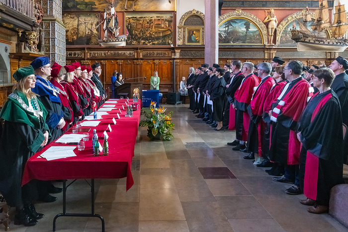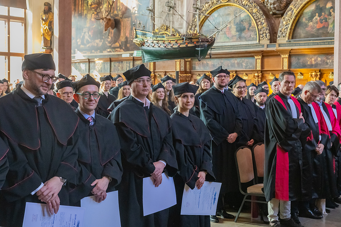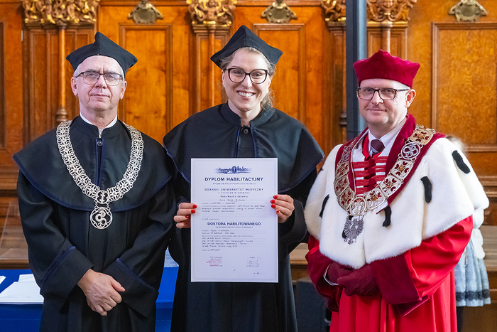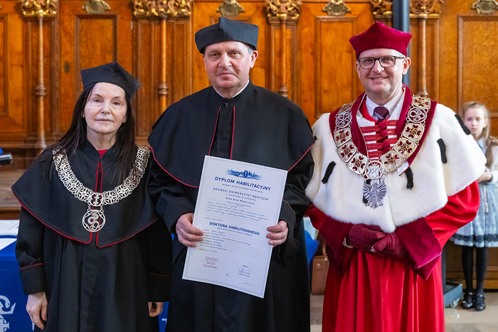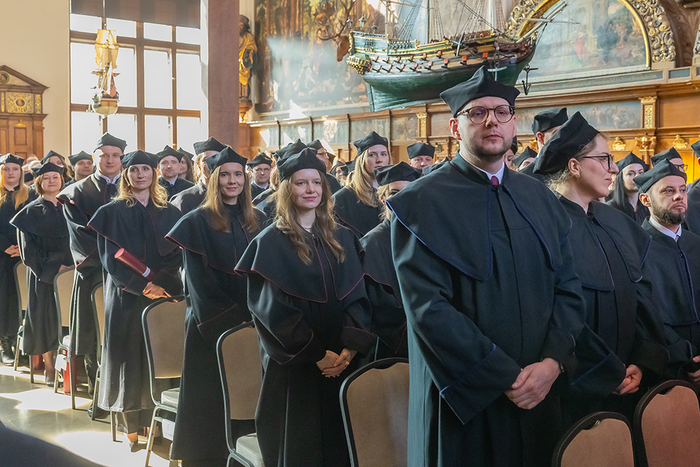 Tradycyjnie w Dworze Artusa doktorzy i doktorzy habilitowani nauk farmaceutycznych, nauk medycznych oraz nauk o zdrowiu odebrali swoje dyplomy. Uroczystość odbyła się 7 marca 2025 r. i uczestniczyli w niej: rektor GUMed prof. Michał Markuszewski, prorektor ds. rozwoju i współpracy prof. Anna Żaczek, prorektor. ds. klinicznych prof. Michał Hoffmann, prorektor ds. nauki prof. Michał Żmijewski, dziekan Wydziału Farmaceutycznego prof. Magdalena Prokopowicz, dziekan Wydziału Lekarskiego prof. Maria Bieniaszewska i dziekan Wydziału Nauk o Zdrowiu z Instytutem Medycyny Morskiej i Tropikalnej prof. Przemysław Rutkowski.
