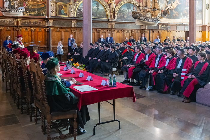 Zgodnie z XVI-wieczną tradycją Dworu Artusa na cześć gości odpalono felukę. Po przemówieniu Rektora odbyło się uroczyste wręczenie dyplomów doktora habilitowanego.