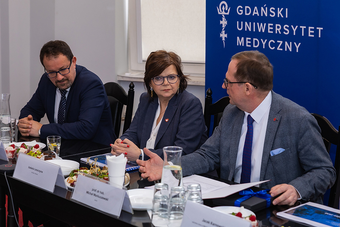 Rozmowy były okazją do prezentacji Uczelni oraz jej szpitala klinicznego, przedstawienia planów ich rozwoju i osiągnięć na przestrzeni 80 lat działalności. Gdański Uniwersytet Medyczny kształci obecnie studentów na 19 kierunkach medycznych. W trakcie spotkania Rektor podkreślał, że misją Uczelni jest nie tylko kształcenie wysokiej klasy specjalistów, ale także formowanie postaw opartych na empatii, szacunku do pacjenta oraz współpracy między zawodami medycznymi. W procesie dydaktycznym GUMed stawia na rozwój kompetencji interpersonalnych, przygotowując studentów do pracy w zintegrowanych zespołach opieki zdrowotnej.