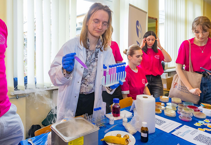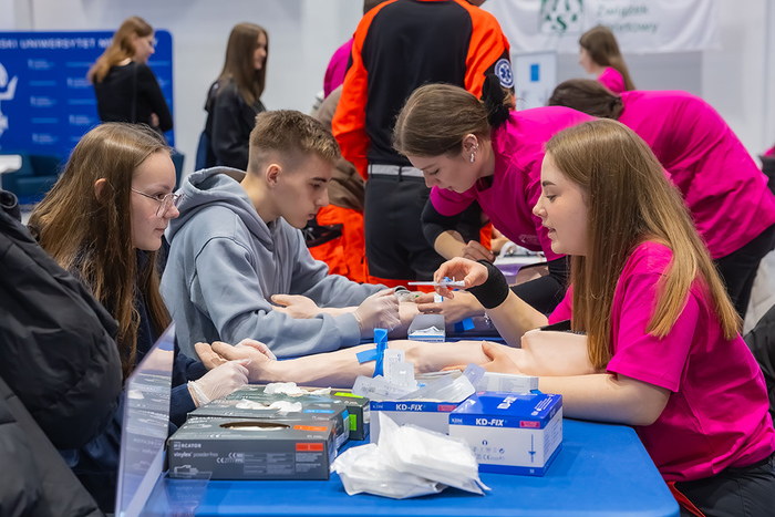 Przyjechali do Gdańskiego Uniwersytetu Medycznego z całej Polski, byli nawet tacy, co wsiedli do pociągu w nocy, by dojechać do Uczelni punktualnie o godz. 8.00. A warto było, bo studenci, doktoranci i pracownicy GUMed przygotowali dla odwiedzających mnóstwo atrakcji i to w kilku lokalizacjach. Impreza odbyła się 11 kwietnia w Centrum Sportu, Atheneum Gedanense Novum i na Wydziale Farmaceutycznym. Była nauka szycia chirurgicznego, warsztaty z pszczelarzem, nauka udzielania pierwszej pomocy, pokaz gipsowania, warsztaty dotyczące roślin leczniczych, a nawet możliwość stworzenia własnego dzieła sztuki z mikroorganizmów – w sumie ponad 60 stoisk i 20 wykładów oraz warsztatów edukacyjnych. Chętni mogli zwiedzić także Centralne Laboratorium Kliniczne UCK, szpitala GUMed, przespacerować się po Klinicznym Oddziale Ratunkowym, odwiedzić Zwierzętarnię, ale także sprawdzić własnoręcznie na fantomach, jak podłączać odżywianie pozaustrojowe choremu czy jak zaintubować ofiarę wypadku. Nie zabrakło też warsztatów Zdrowy kręgosłup i Less stress oraz Zapisane w kościach – słowo o antropologii sądowej. Były też badania profilaktyczne. Studenci z SKN Kardiologii przeprowadzali badanie poziomu glukozy, cholesterolu i kwasu moczowego, członkinie SKN Przyszłe Położne pokazywały jak prawidłowo badać piersi, a Zakład Toksykologii Środowiska badał poziom wysycenia witaminą C.