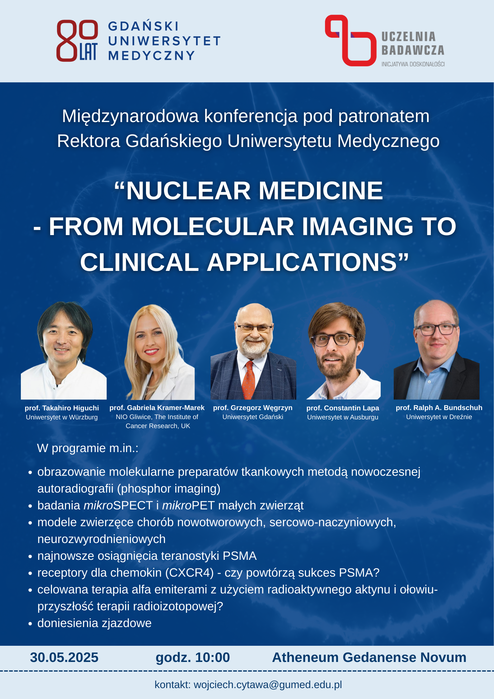 Do udziału w konferencji zaproszono grupę ekspertów z kraju i zagranicy. Zaproszenie przyjęli: prof. Takahiro Higuchi (Uniwersytet w Würzburgu, Niemcy), prof. Constantin Lapa (Uniwersytet w Augsburgu, Niemcy), prof. Gabriela Kramer-Marek (Institute of Cancer Research, Sutton, Wielka Brytania / Narodowy Instytut Onkologii, Gliwice), prof. Ralph A. Bundschuh (University Hospital Carls Gustav Carus, Drezno, Niemcy), prof. Grzegorz Węgrzyn (Uniwersytet Gdański).