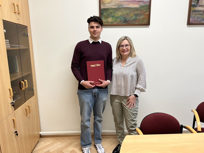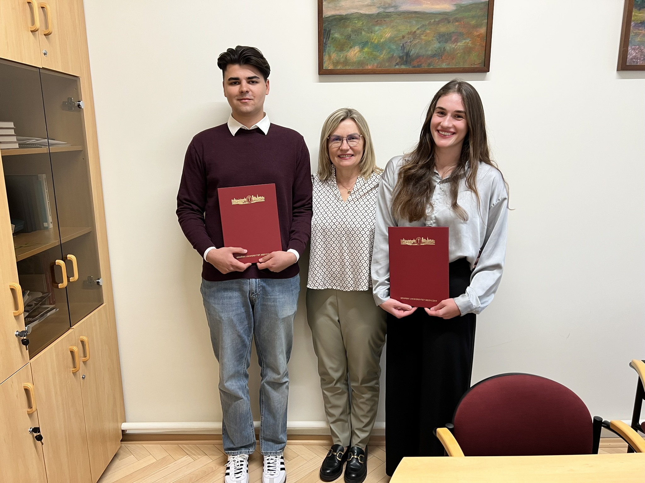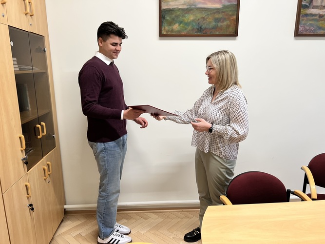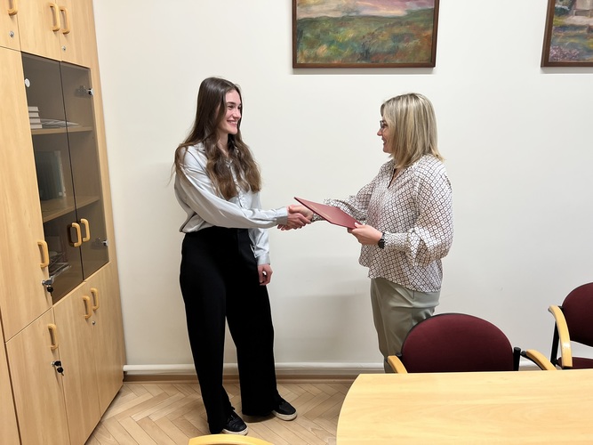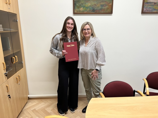 Z wyróżnionymi studentami (oprócz nieobecnej Anny Prus) spotkała się prof. Aleksandra Gaworska-Krzemińska, prorektor ds. studenckich, która przekazała im listy gratulacyjne.