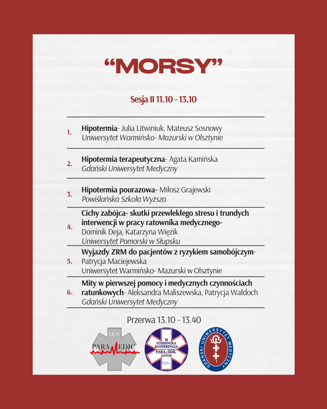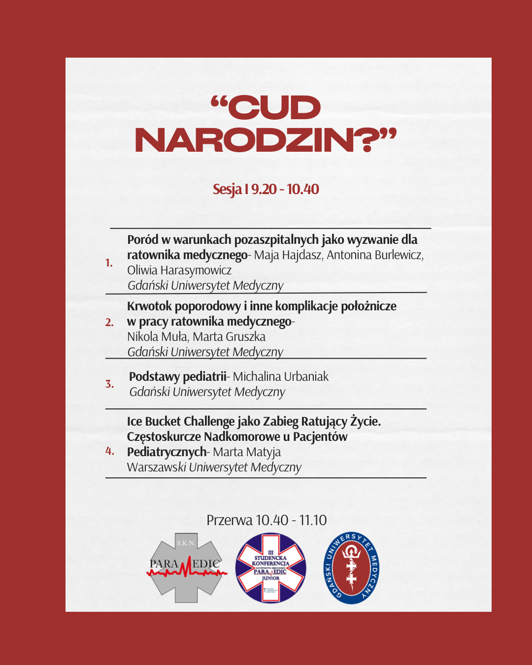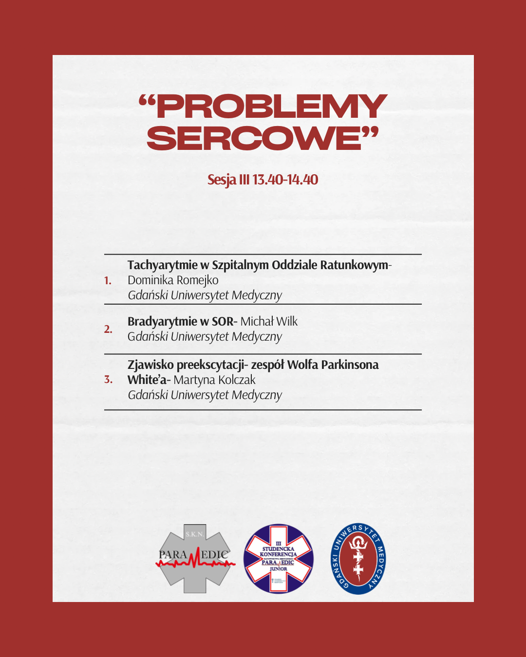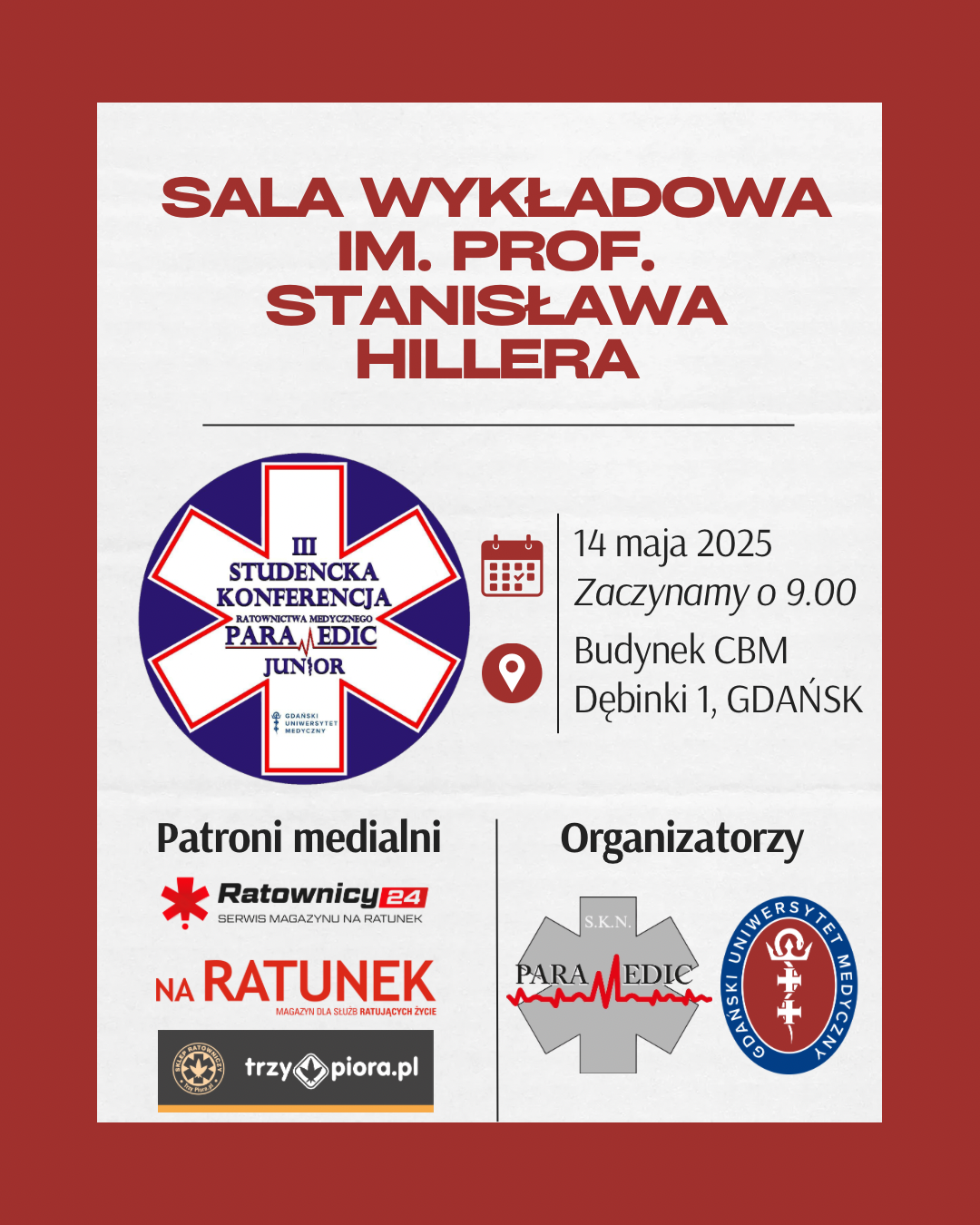 III Studencka Konferencja Ratownictwa Medycznego – Paramedic Junior, to kolejna odsłona konferencji organizowanej przez SKN Paramedic Gdańskiego Uniwersytetu Medycznego. Jest ona zainicjowana i w pełni prowadzona przez studentów. Uczestnikami są studenci wszystkich kierunków medycznych, zainteresowani medycyną ratunkową. Tematami poruszanymi podczas konferencji są szeroko pojęte działania podejmowane w postępowaniu z pacjentem w warunkach przedszpitalnych. Wydarzenie jest również miejscem nawiązywania kontaktów oraz wymiany doświadczeń studentów z różnych uczelni medycznych, co stanowi ważny element w przyszłej pracy każdego z uczestników.