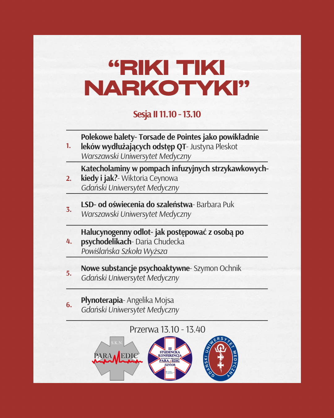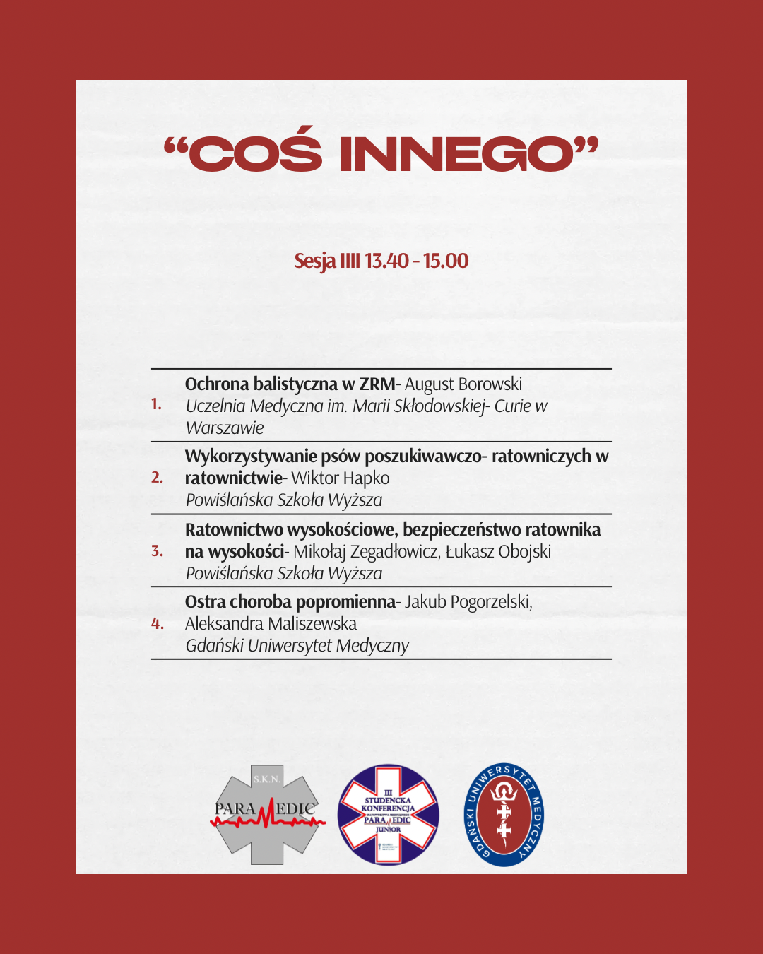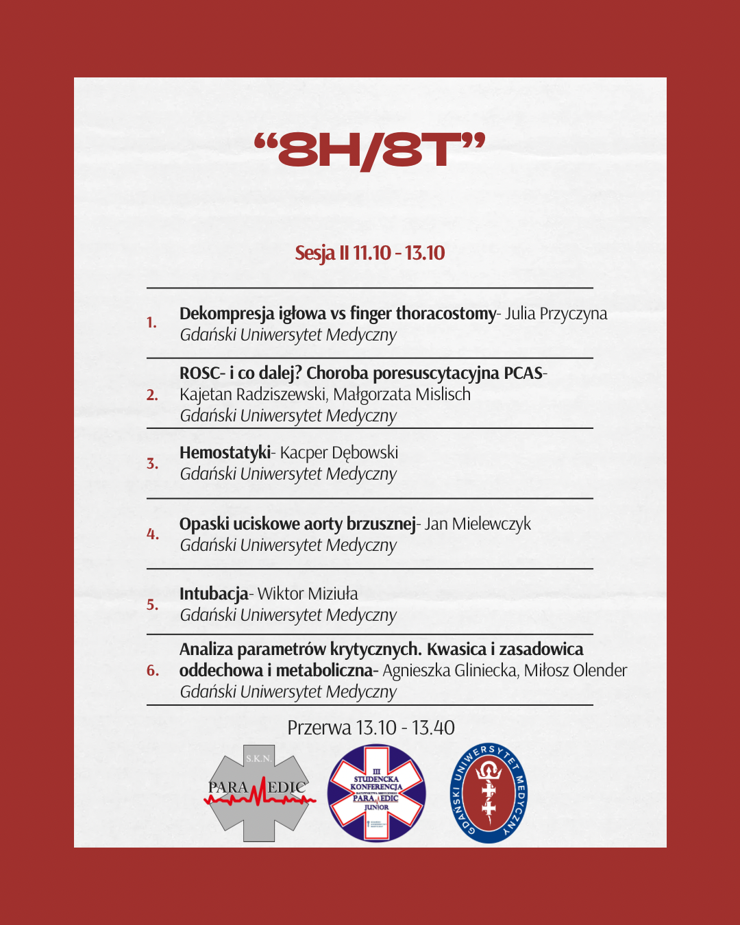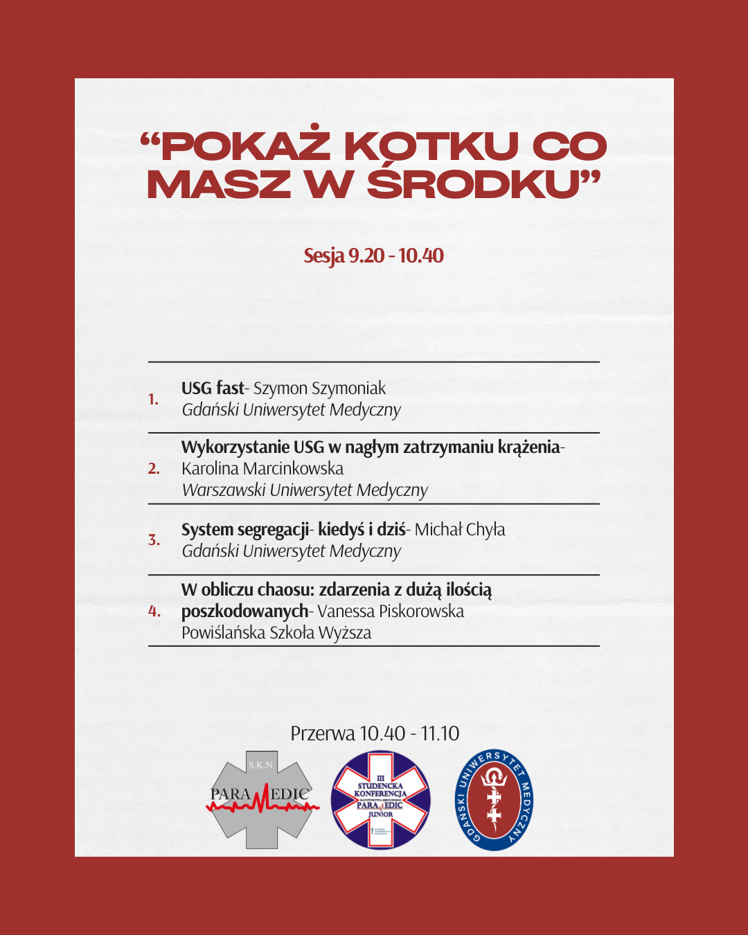 III Studencka Konferencja Ratownictwa Medycznego – Paramedic Junior, to kolejna odsłona konferencji organizowanej przez SKN Paramedic Gdańskiego Uniwersytetu Medycznego. Jest ona zainicjowana i w pełni prowadzona przez studentów. Uczestnikami są studenci wszystkich kierunków medycznych, zainteresowani medycyną ratunkową. Tematami poruszanymi podczas konferencji są szeroko pojęte działania podejmowane w postępowaniu z pacjentem w warunkach przedszpitalnych. Wydarzenie jest również miejscem nawiązywania kontaktów oraz wymiany doświadczeń studentów z różnych uczelni medycznych, co stanowi ważny element w przyszłej pracy każdego z uczestników.