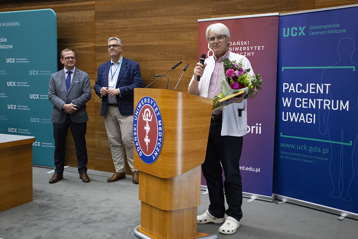 – Jesteśmy dumni z naszego szpitala uniwersyteckiego i z lekarzy tu pracujących. Dokonują niesamowitych rzeczy, aby leczyć pacjentów. W Polsce nadal poziom wyszczepialności jest niższy niż w Europie, co powoduje, że niestety nadal wielu pacjentów nie doczekuje do momentu, gdy pojawia się właściwy przeszczep. Dlatego to tak ważne, abyśmy mówili o transplantologii i uczyli społeczeństwo. To właśnie robimy każdego dnia w Gdańskim Uniwersytecie Medycznym i Uniwersyteckim Centrum Klinicznym – mówi prof. Michał Markuszewski, rektor GUMed.