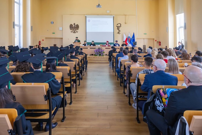 Wręczenie dyplomów ukończenia studiów absolwentom kierunku farmacja oraz farmacja English Division rocznika 2019-2025 odbyło się 23 maja br. w Auditorium Maximum Wydziału Farmaceutycznego Gdańskiego Uniwersytetu Medycznego. W uroczystości, której przewodniczyła dziekan WF GUMed prof. Magdalena Prokopowicz uczestniczyli: rektor Gdańskiego Uniwersytetu Medycznego prof. Michał Markuszewski, dziekan Wydziału Nauk o Zdrowiu prof. Przemysław Rutkowski, prodziekani WF GUMed prof. Katarzyna Gobis, dr hab. Danuta Siluk, prof. uczelni, dr hab. Agnieszka Ćwiklińska, członkowie Rady Wydziału, członkowie Rady Pracodawców, zaproszeni goście oraz rodziny absolwentów.