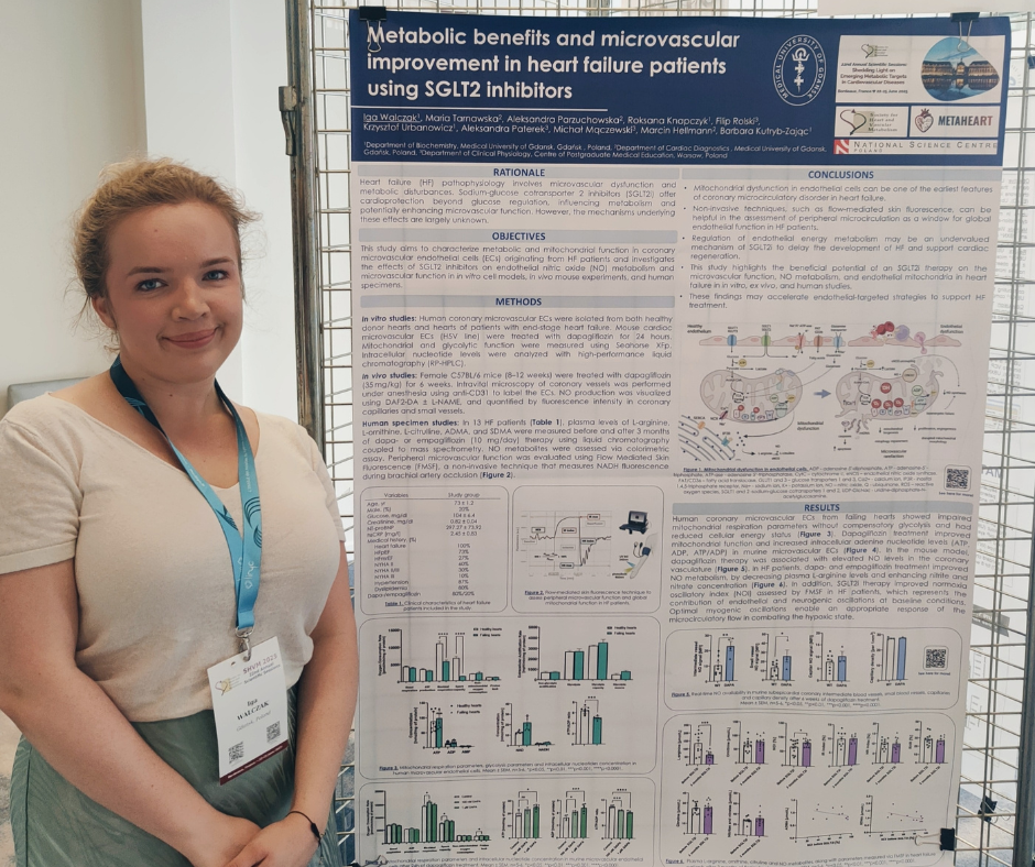 Doktorantki z Katedry i Zakładu Biochemii GUMed – mgr Klaudia Stawarska oraz mgr Iga Walczak, realizujące badania pod opieką dr hab. Barbary Kutryb-Zając, prof. uczelni wzięły udział w 22. konferencji Society for Heart and Vascular Metabolism (SHVM), która odbyła się w dniach 22-25 czerwca w Bordeaux. Tematyka konferencji obejmowała najnowsze osiągnięcia w zakresie mechanizmów chorób sercowo-naczyniowych, w tym niewydolności serca, dysfunkcji mitochondriów oraz nowych strategii terapeutycznych ukierunkowanych na metabolizm serca i naczyń krwionośnych.