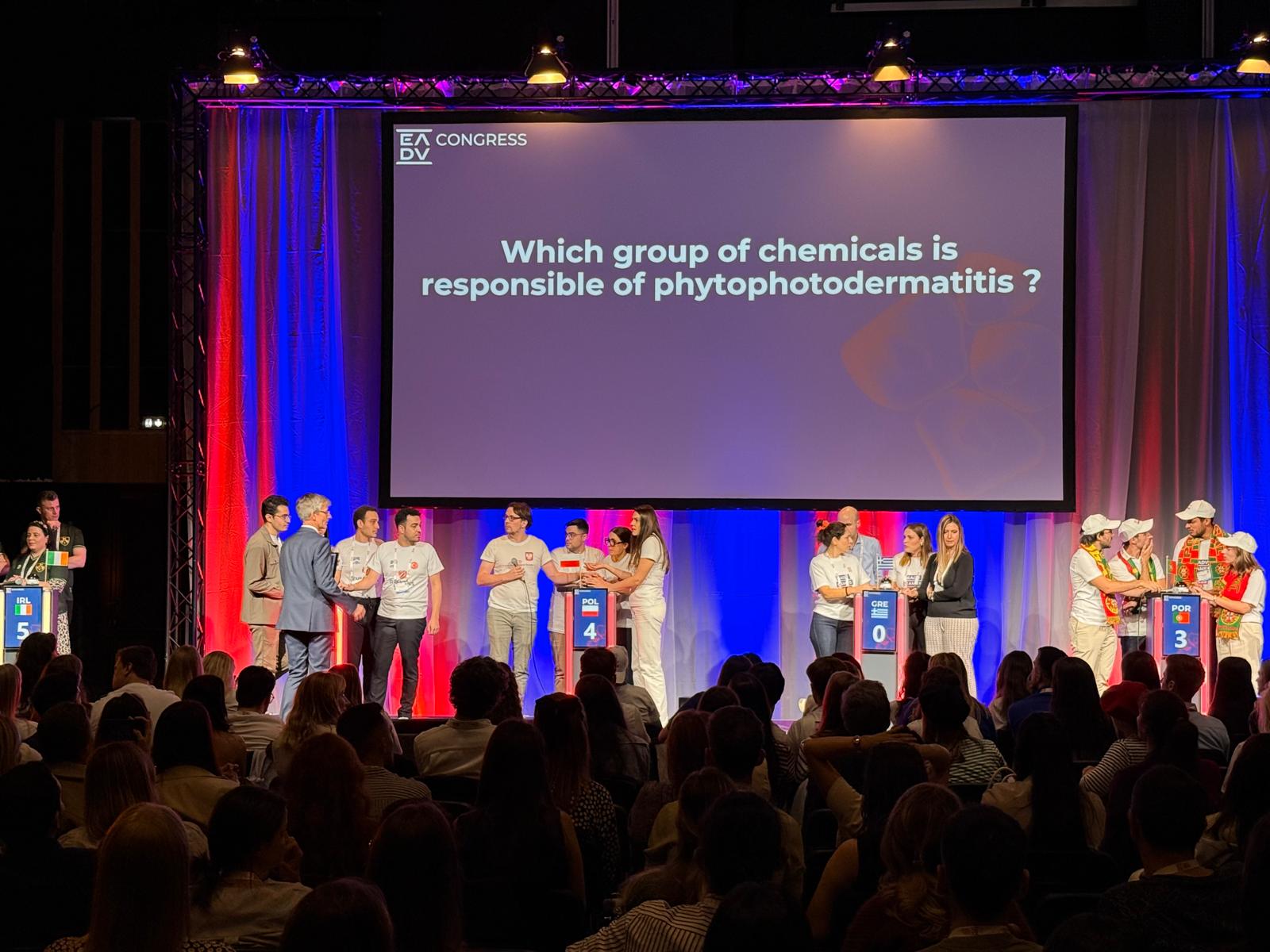 European Academy of Dermatology and Venereology Congress. W tym roku odbył się on w Paryżu i zgromadził ponad 20 000 uczestników. Rywalizacja ma formę dynamicznego quizu, w którym liczą się nie tylko szeroka wiedza medyczna (pytania dotyczyły m. in. rozpoznawania dermatoz na podstawie pojedynczej migawki, najnowszych doniesień naukowych z dermatologii i wenerologii, rzadkich dermatoz oraz historii dermatologii), lecz także refleks i współpraca w zespole. Każdy kraj reprezentuje czteroosobowa drużyna rezydentów. Polskę, poza reprezentantem naszej Uczelni reprezentowali